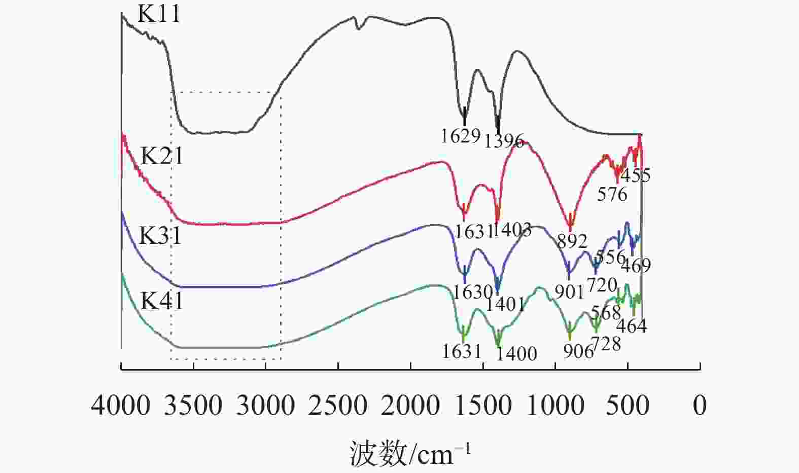 图  3  不同反应条件下ZnFe-LDHs样品的FTIR谱图