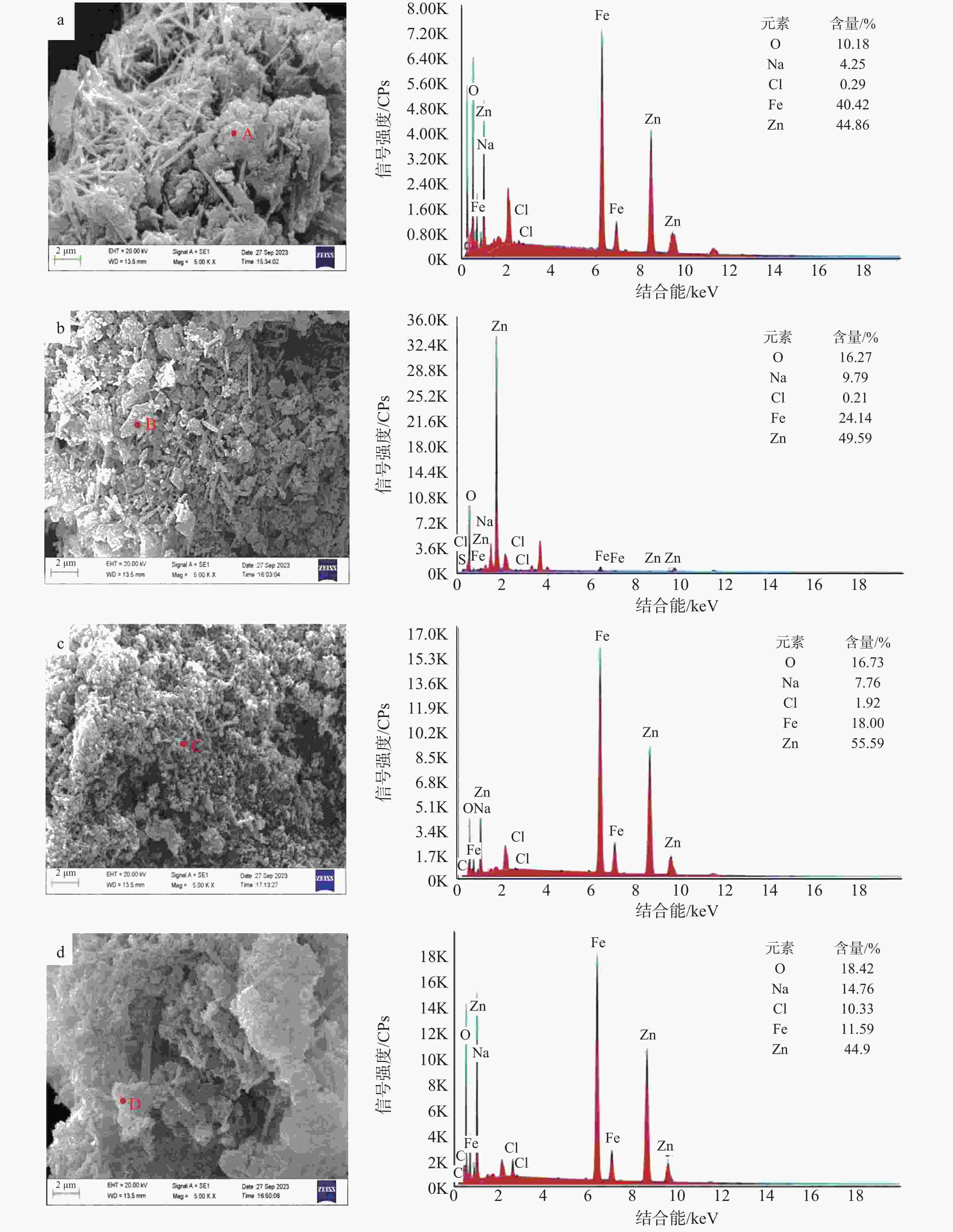 图  4  不同Zn/Fe物质的量的比下ZnFe-LDH样品的微观形貌和EDS谱图