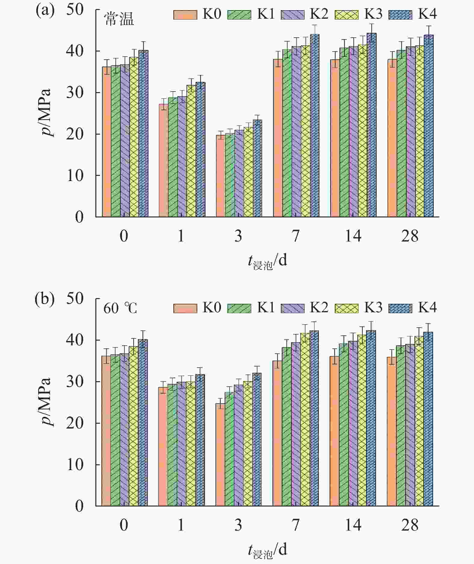 图  6  水泥石在(a)常温和(b)60 ℃下浸泡不同时间的抗压强度