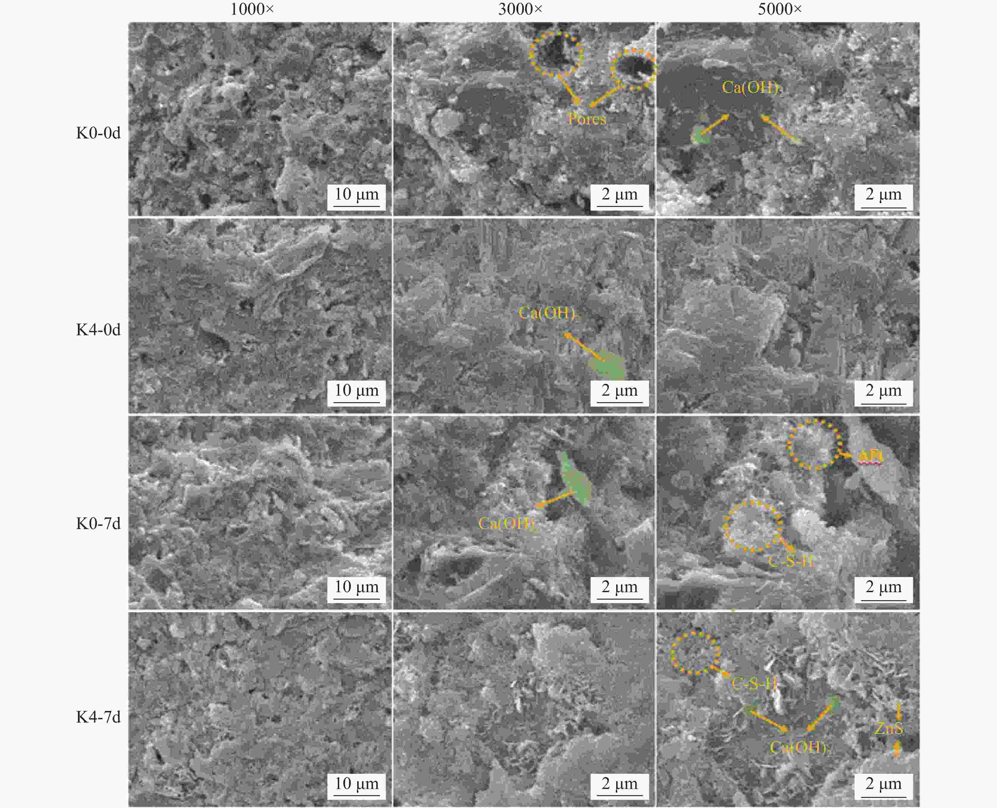 图  9  K0及K4水泥石浸泡前后的微观形貌