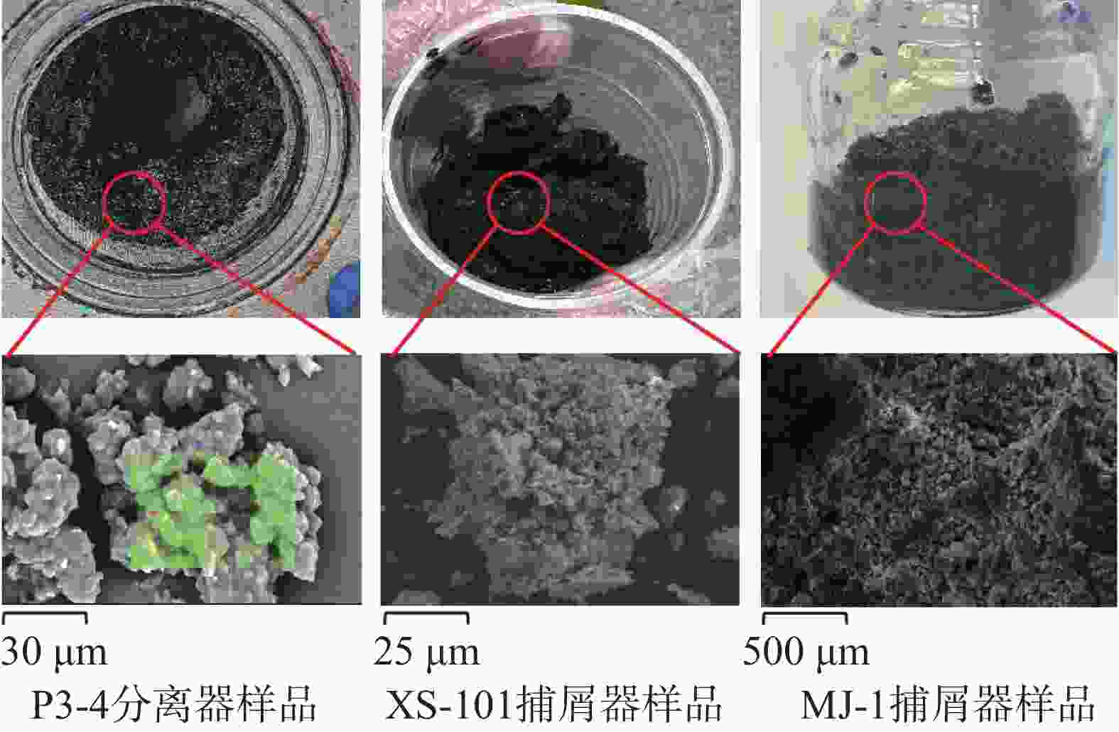 (分离器)<11.6%有机物 聚丙烯酰胺和芳烃类 >88.4%无机物 FeS、黏土矿物、BaSO4 第4次连油解堵