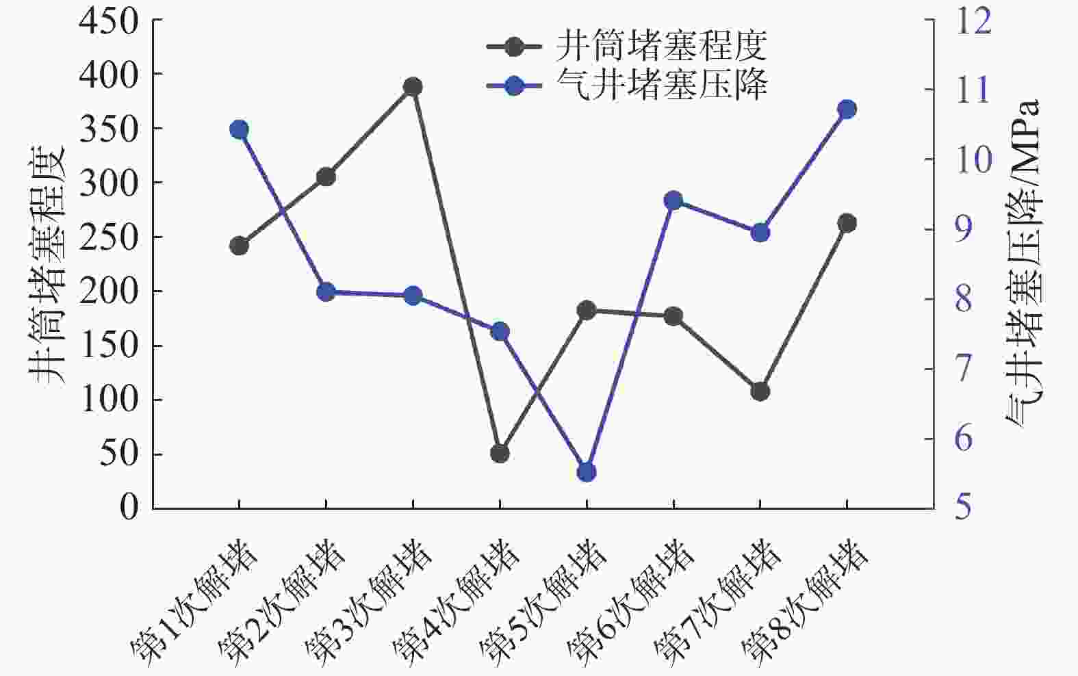 解堵液 无机堵塞物 有机堵塞物 解堵液1(甲苯) 溶解率13%~33% 溶解率42%~60% 解堵液2(乙醇) 溶解率10%~36% 溶解率25%~58% 解堵液3(丙酮) 溶解率14%~30% 溶解率<20% 酸液 溶解率65.7% 降黏>90% 降黏解堵液1 几乎不溶解 降黏91% 降黏解堵液2 几乎不溶解 降黏73% 降黏解堵液3 几乎不溶解 降黏63.6% 表 5 基于“堵塞程度量化方法”的分类治理对策
