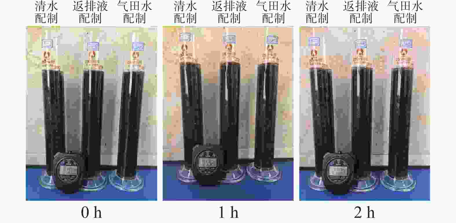 混合比例/% 矿化度/(mg·L−1) 配方 η/mPa·s 气田水 35 000 (1.5%~1.6%)ASCM+(0.02%~0.04%)破胶剂 120~132 返排液 16 700 (1.3%~1.4%)ASCM+(0.02%~0.03%)破胶剂 108~120 (30%~50%)气田水 11 000~18 000 (1.2%~1.4%)ASCM+(0.01%~0.02%)破胶剂 100~130 (50%~70%)气田水 18 000~25 000 (1.4%~1.5%)ASCM+(0.02%~0.03%)破胶剂 110~130 -