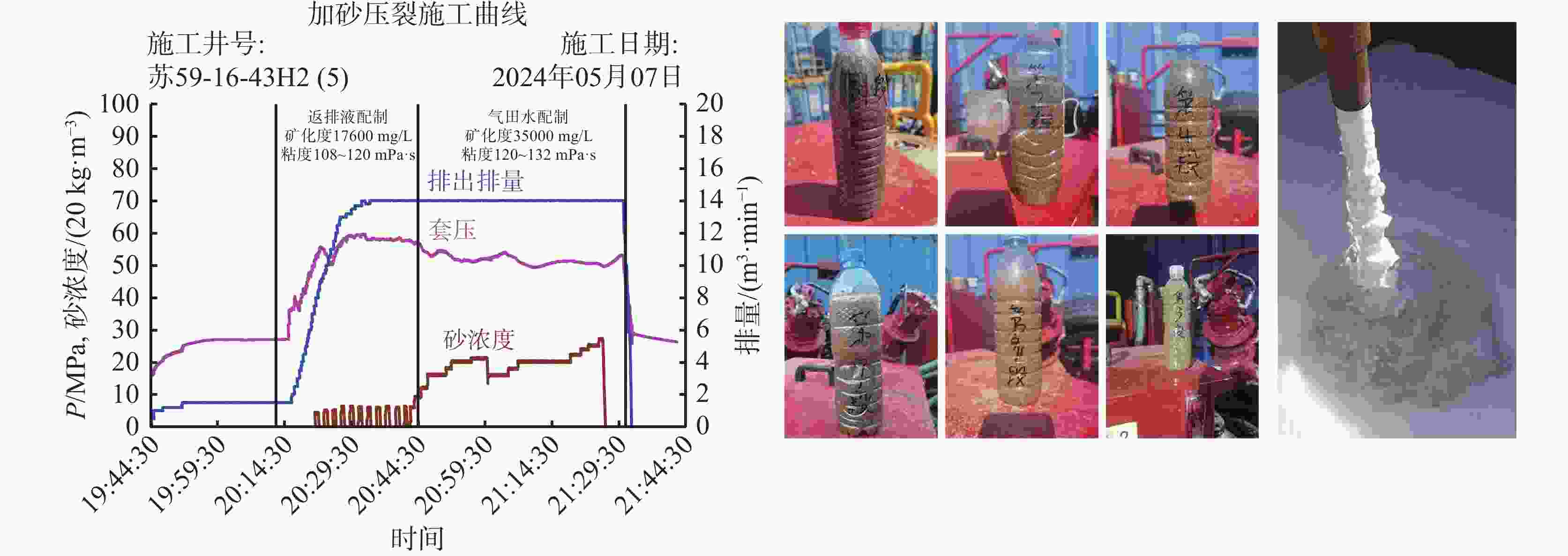 mg·L−1返排液 7 601 77 43 91 00 17 600 气田水 7 5 700 129 26 18 300 35 000 表 6 S59-16-XXH2井气田水动态回用方案及优化配方