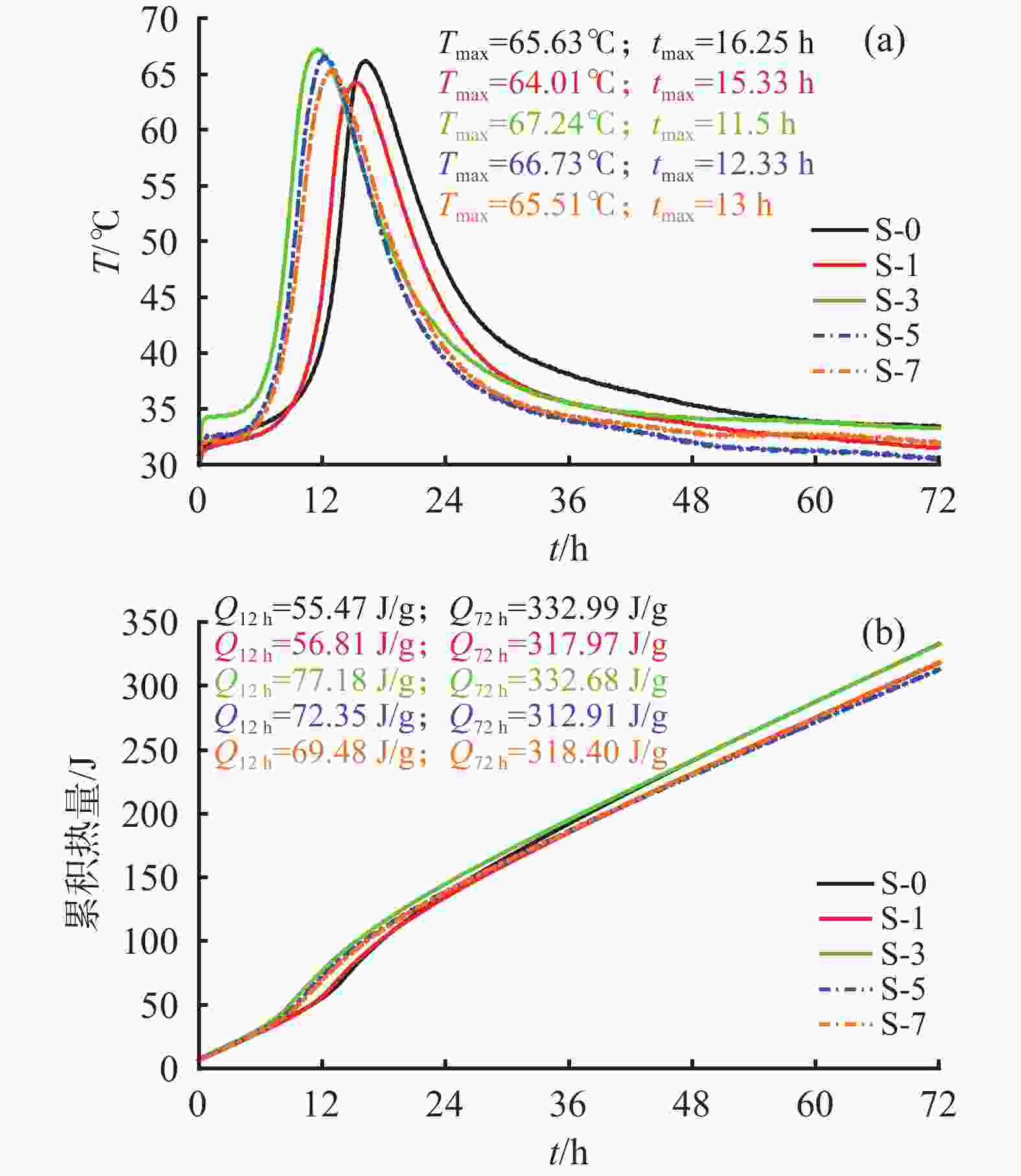 图  3  CO2不同通气时间下水泥浆体  水化72 h内水化放热情况