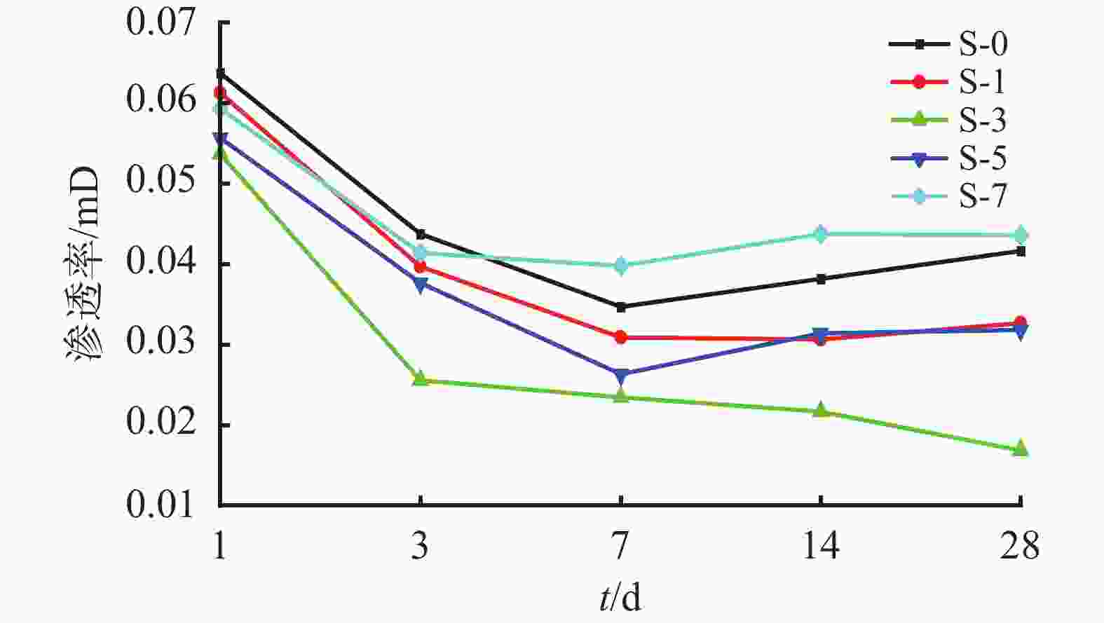 图  5  不同通气时间下水泥石渗透率变化
