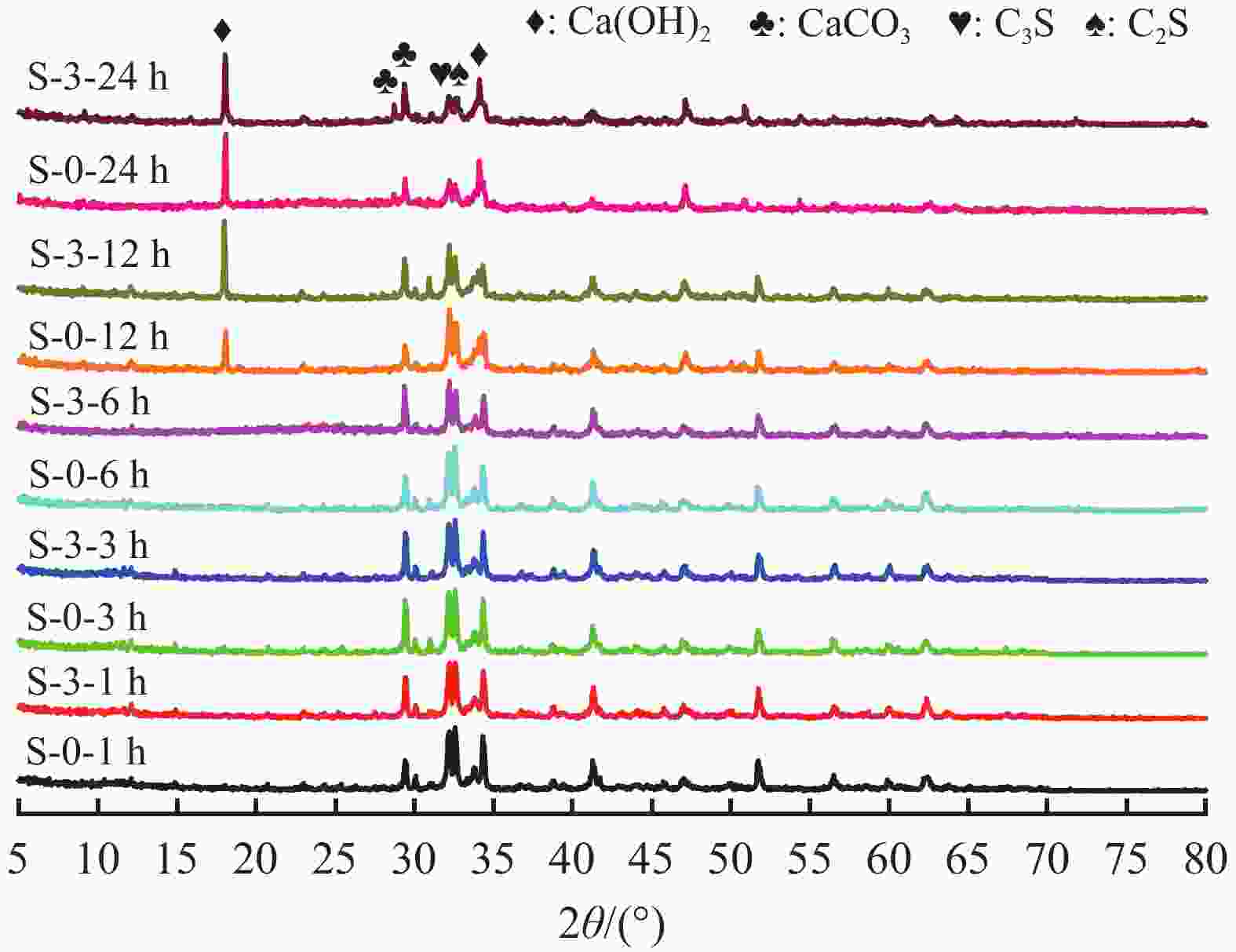 图  6  水化24 h内S-0和S-3各水化阶段XRD图谱