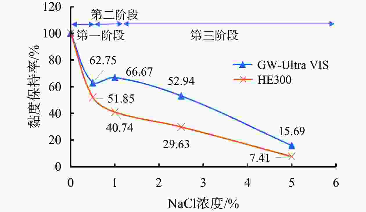 浓度/% AV/mPa·s n K/Pa·sn 0.05 1.25 0.74 8 0.10 2.5 0.74 15 0.25 10.0 0.62 138 0.50 25.0 0.51 722 0.75 41.5 0.44 1951 1.00 58.5 0.43 3092 表 3 增黏剂水溶液流变性能