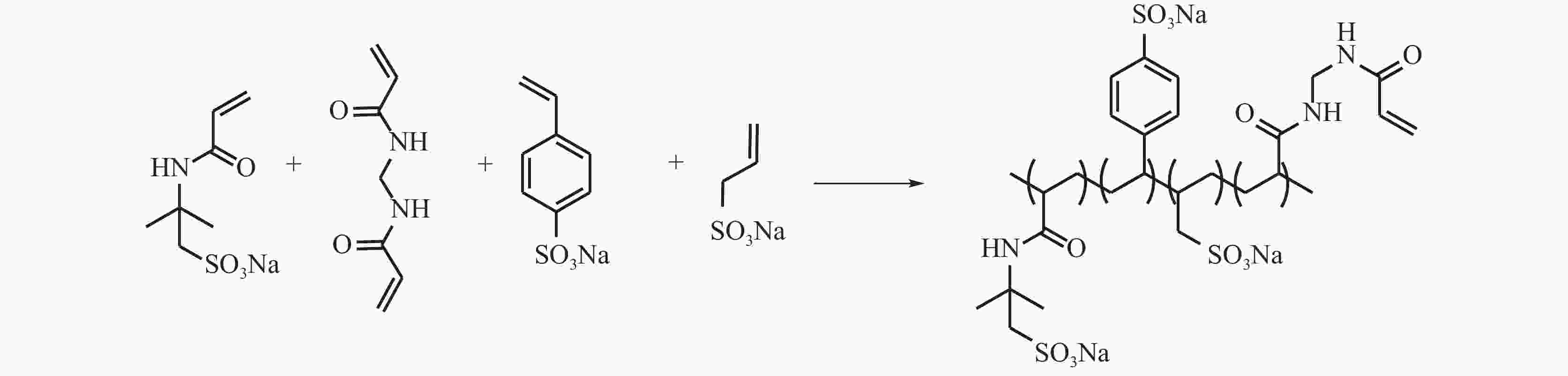 摘要: 为解决在高温/超高温环境下钻井液切力下降导致钻井液的沉降稳定性能及携岩能力降低,致使钻井液固相颗粒无法均匀分散及岩屑聚集这一问题,以AMPS(2-丙烯酰胺基-2-甲基丙磺酸),SAS(烯丙基磺酸钠),SSS(对苯乙烯磺酸钠)以及MBA(亚甲基双丙烯酰胺)为主要原料设计合成了一种四元抗温达到230 ℃的钻井液悬浮剂XFJ-3#。采用红外光谱、热重分析以及核磁共振H谱对XFJ-3#进行表征。结果表明,XFJ-3#为预期产物,600 ℃时失重仅为 60%。通过其性能评价可知,加量1%XFJ-3#的5%膨润土浆,经过230 ℃、10 d老化后,其切力保持率超过70%。悬浮剂XFJ-3#可以有效提升钻井液在超高温环境下长时间维持钻井液的沉降稳定性能。Abstract: In high-temperature and ultra-high-temperature drilling operations, the decrease in drilling fluid gel strengths causes the settling stability and the sand carrying capacity of the drilling fluid to reduce, which results in uneven dispersion of the solid particles and cuttings agglomeration in the drilling fluid. To address this problem, a quaternary polymer drilling fluid suspending agent, XFJ-3#, which exhibits temperature resistance up to 230 ℃, was designed and synthesized using AMPS (2-acrylamido-2-methylpropanesulfonic acid), SAS (sodium allylsulfonate), SSS (sodium p-styrenesulfonate) and MBA (methylene bisacrylamide) as the main raw materials. Fourier transform infrared spectroscopy (FT-IR), thermogravimetric analysis (TGA) and 1H nuclear magnetic resonance spectroscopy (1H-NMR) were used to characterize XFJ-3#. The results show that XFJ-3# is the target product. XFJ-3# loses only 60% of its weight at 600 ℃. Performance evaluation results show that a 5% Bohai drilling clay slurry treated with 1%XFJ-3# retains more than 70% of its gel strengths after aging at 230 ℃ for 10 days. The suspending agent XFJ-3# can effectively improve the ability of a drilling fluid to maintain its settling stability for a long time under ultra-high temperature environments.
