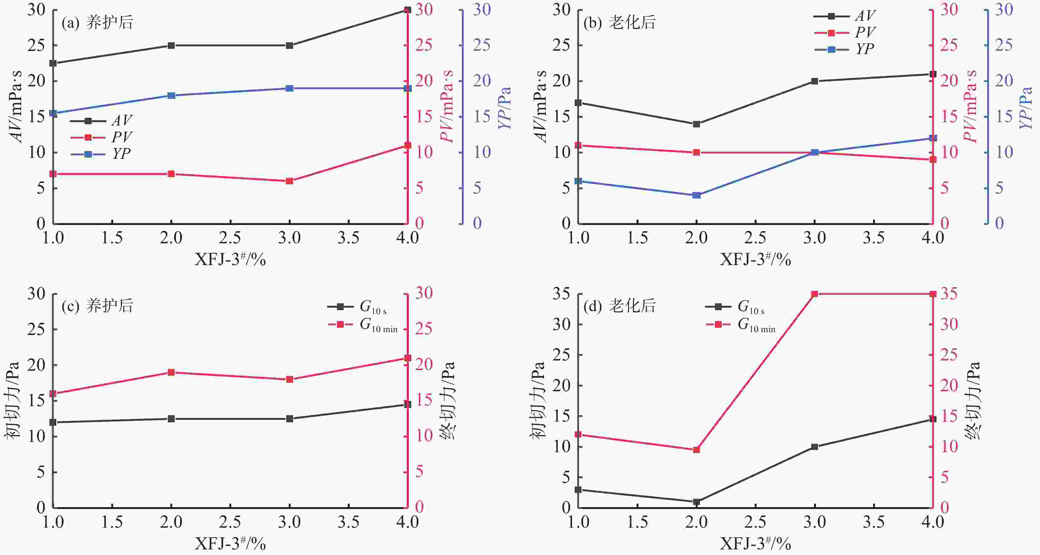 表 1 XFJ-3#悬浮剂加量与膨润土浆性能变化