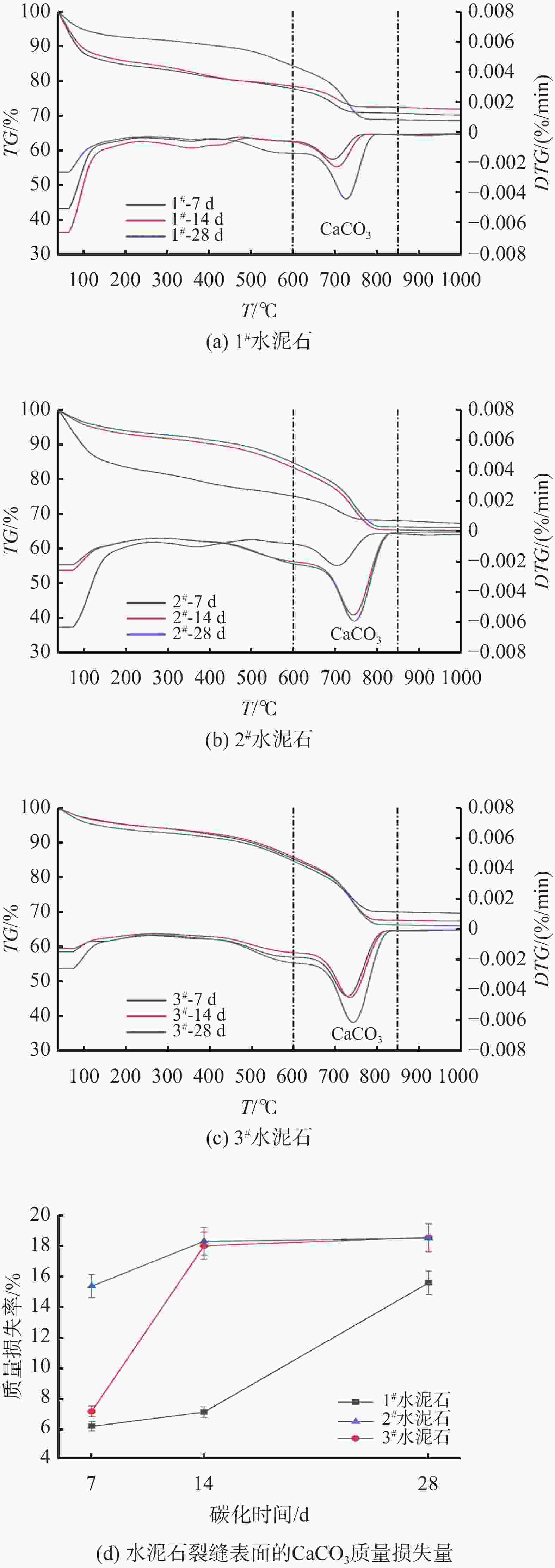 图  4  3种配方水泥石自修复不同天数后裂缝表面的TG变化