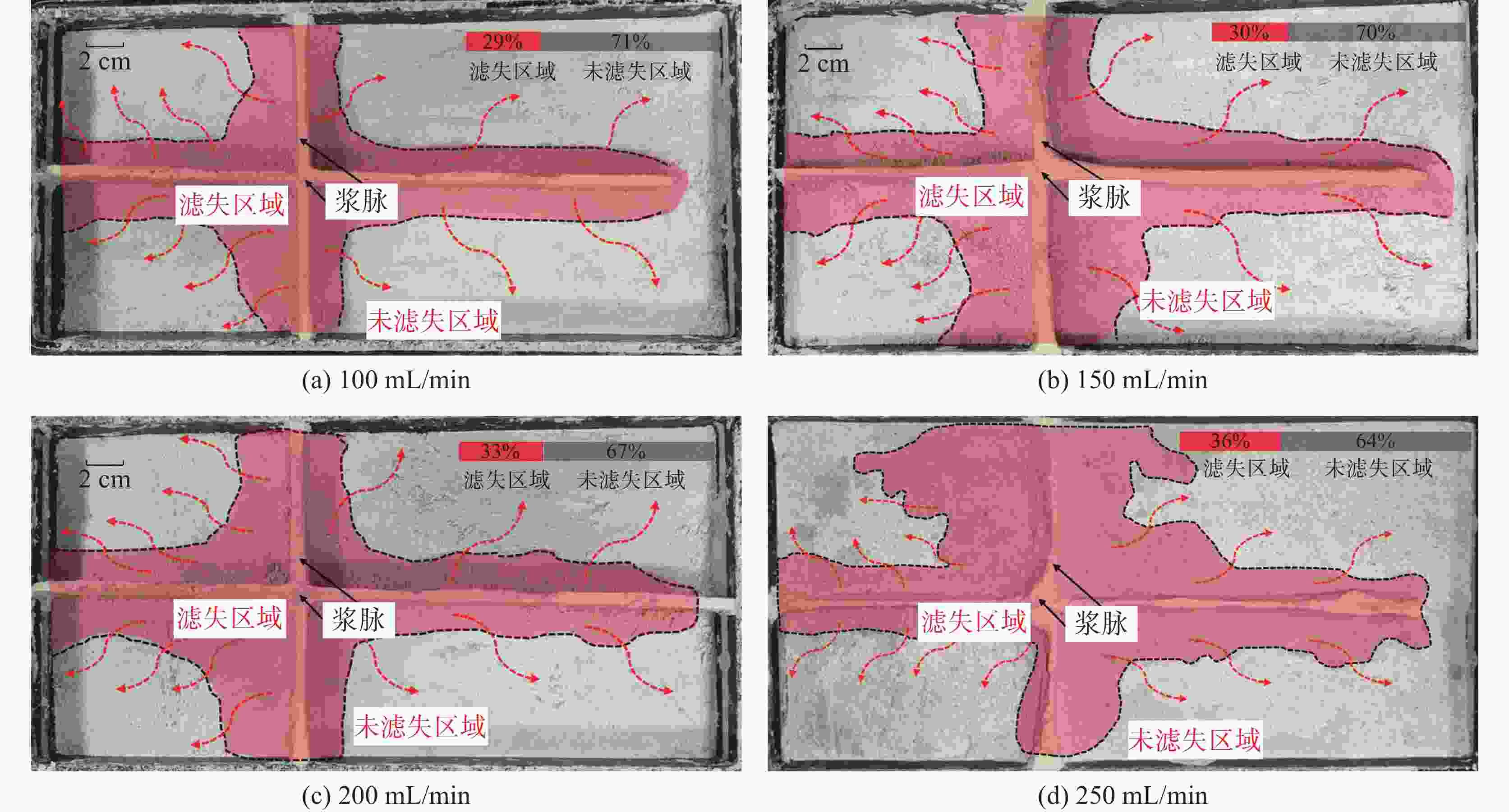 图  14  不同注浆速率下浆液滤失范围