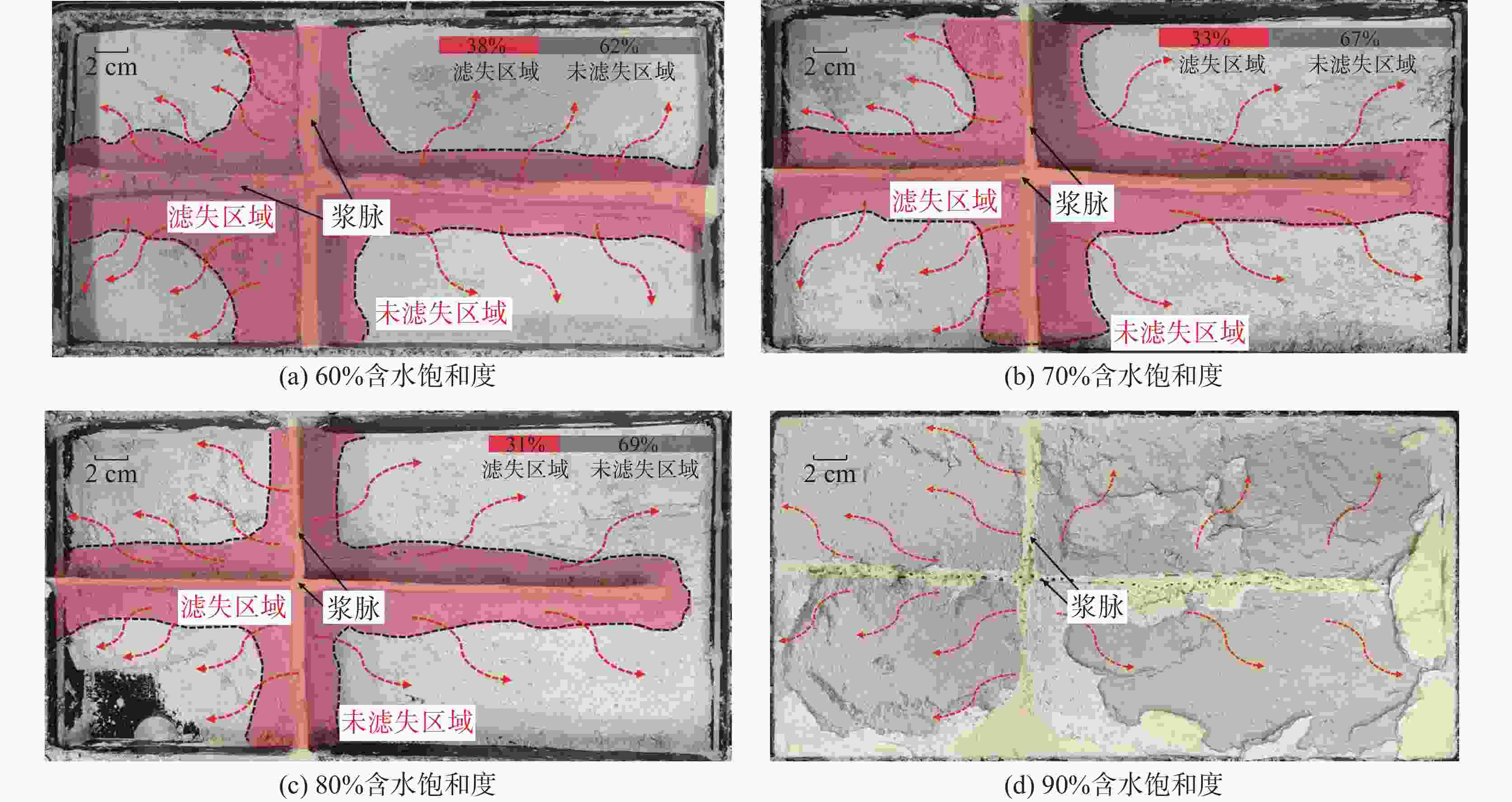图  7  不同含水饱和度沉积物下浆液的滤失范围