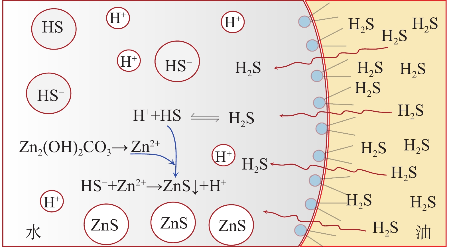 Basic zinc carbonate is a commonly used sulfide scavenger for drilling high-sulfide content formations with water-based drilling fluids, its ability to remove sulfide and the mechanism of sulfide removal in oil-based drilling fluids are still not well understood. In evaluating the rate if hydrogen sulfide removal, conventional methods use relatively low concentration and flow rate of hydrogen sulfide, the results of these methods are not suitable for high temperature application, and the reaction time in these methods is too short. To overcome these deficiencies of the old evaluation methods, a new experimental platform for evaluating the rate of sulfide scavenging of deep-well drilling fluids has been constructed. Using this platform, the rates of sulfide scavenging of basic zinc carbonate in oil, water, water-in-oil emulsion and oil-based drilling fluid were tested; the test results were used to analyze the existence forms of hydrogen sulfide in water-in-oil emulsions, the sulfide scavenging mechanisms of basic zinc carbonate in neutral and weakly-alkaline aqueous phases were clarified, and the sulfide scavenging mechanism of basic zinc carbonate in oil-based drilling fluids was then revealed. The test results show that the rate of sulfide scavenging of basic zinc carbonate in oil-based drilling fluids can be as high as 100%; most of the hydrogen sulfide (>90%) invading into an oil-based drilling fluid exists as undissociated hydrogen sulfide molecules in the oil phase of the oil-based drilling fluid, and only a small fraction (<10%) of the invading hydrogen sulfide dissolves into the aqueous phase to form ions dominated by HS. In the aqueous phase of an oil-based drilling fluid, the Zn2+ ions ionized from basic zinc carbonate react directly with the primary ionization product HS of hydrogen sulfide to form ZnS precipitate, and a high pH of the aqueous phase is not a necessary condition for sulfide scavenging; the reaction-diffusion coupling effect is the primary mechanism of sulfide scavenging by basic zinc carbonate in oil-based drilling fluids, and temperature increase is helpful to enhance the rate of sulfide scavenging. The revealed working mechanism of basic zinc carbonate in oil-based drilling fluids provides a scientific basis for using this chemical as a sulfide scavenger in oil-based drilling fluids.