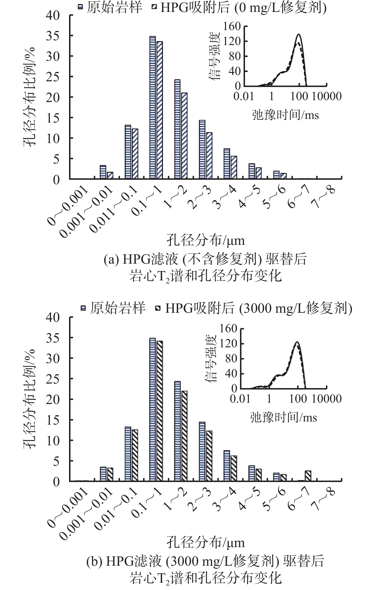 In sandstone reservoir hydraulic fracturing operation, the adsorption and retention of hydroxypropyl guar gum (HPG) on the surfaces of reservoir rocks cause significant formation damage which requires an urgent solution. It is decided, based on laboratory study, that a repair agent should be used to mitigate the formation damage by HPG and hence to improve the effect of sandstone reservoir fracturing. Using spectroscopy technology, the quantity of HPG adsorbed and retained in sandstones can be quantitatively studied, and using NMR technology, the effect of the repair agent on reducing formation damage by HPG can be characterized. Based on these studies, the optimum quantity of the repair agent to be used was determined, and the effects of temperature and retention period on the performance of the repair agent were investigated. Using X-ray photoelectron spectroscopy, SEM and contact angle measurement, the mechanisms of the repair agent to mitigate formation damage by HPG were revealed. The results of the study show that the optimum concentration of the repair agent is 3000 mg/L, and the formation permeability damage is reduced by 29.31%. Temperature has a relatively low effect on the performance of the repair agent. The effect of the repair agent on reducing formation damage first decreases and then increases with the time of HPG retention on the surfaces of the sandstones. Through hydrogen-bond inhibition, preferentially occupying adsorption sites and increasing interface contact angles, the repair agent mitigates the retention of HPG in sandstone reservoirs. The field application of the repair agent in Hangjinqi block showed that the concentrations of the guar gum in the waste fracturing fluids from wells treated with the repair agent were significantly increased, and the oil production was significantly increased and stabilized for a longer time. The results of the study provide technical support to the efficient development of sandstone reservoirs.